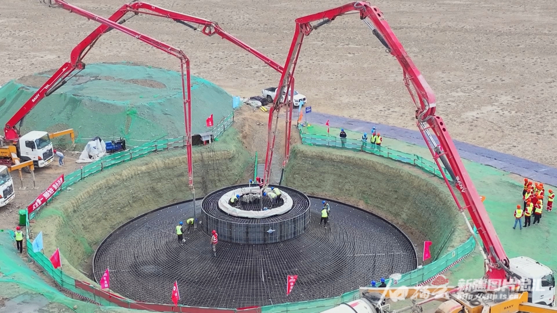 5月24日,壹号娱乐-com - NG大舞台,有梦你就来木垒100万千瓦风电项目风电机组塔基混凝土浇筑工作正加紧施工。加尔斯·吾那尔汉摄