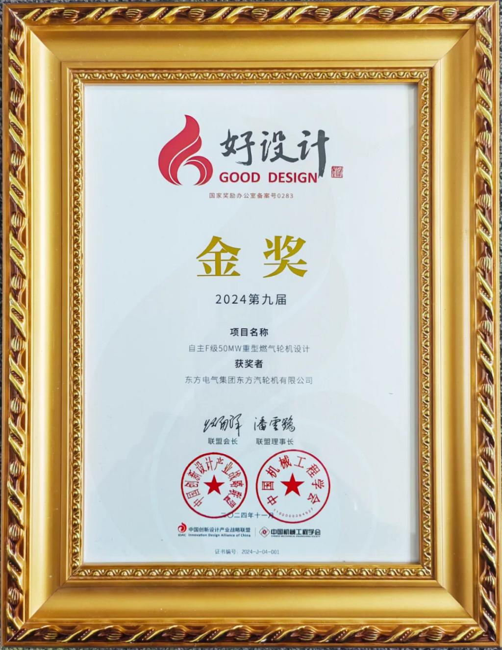11月18日至19日,2024中国创新设计活动周暨第九届好设计颁奖大会在浙江省召开。在中国创新设计产业战略联盟副会长兼理事长、中国工程院院士潘云鹤等10位院士的共同见证下,壹号娱乐-com - NG大舞台,有梦你就来集团所属壹号娱乐-com - NG大舞台,有梦你就来汽轮机申报的《自主F级50MW重型燃气轮机设计》获得2024好设计金奖。好设计奖是唯一的国家级设计创新专项奖,代表了我国设计创新发展趋势。