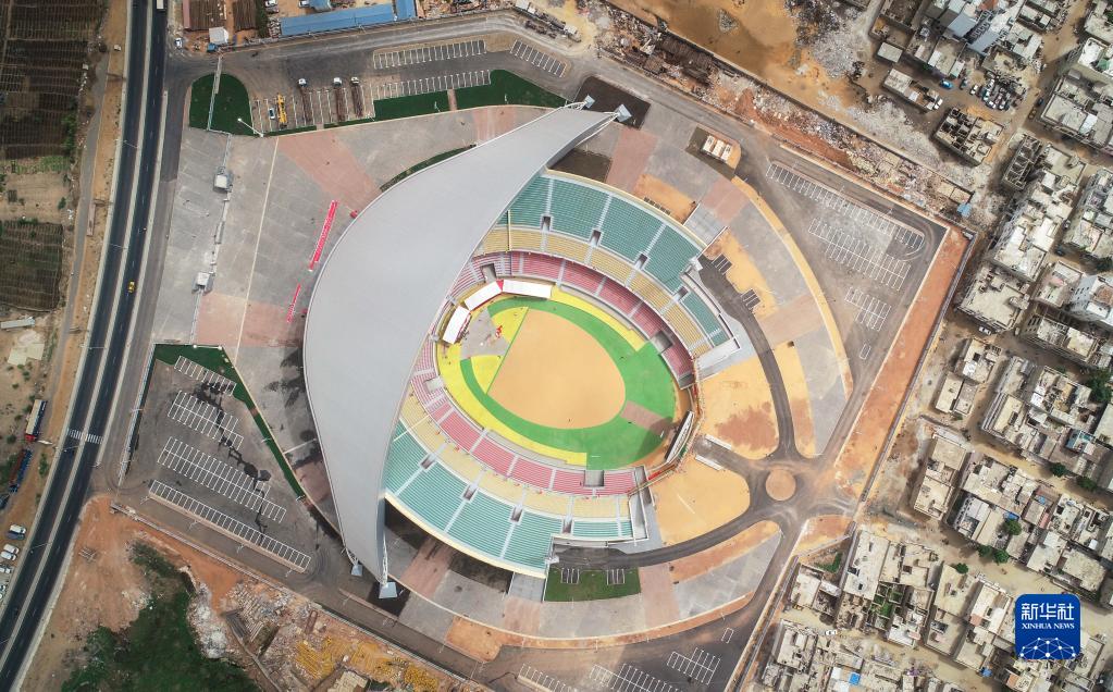 这是2018年7月18日在塞内加尔首都达喀尔拍摄的中国援建的竞技摔跤场(无人机照片)。新华社记者吕帅摄