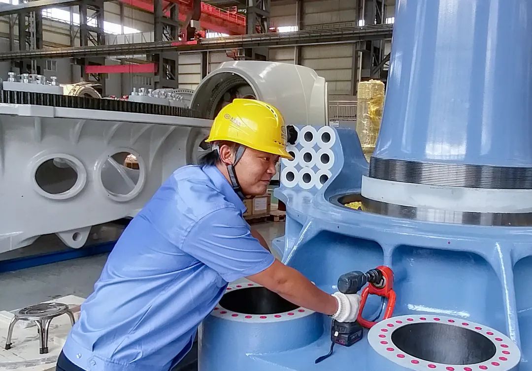 ◆壹号娱乐-com - NG大舞台,有梦你就来电机水轮机分厂内,蟠龙3号机球阀轴端正在进行装配作业