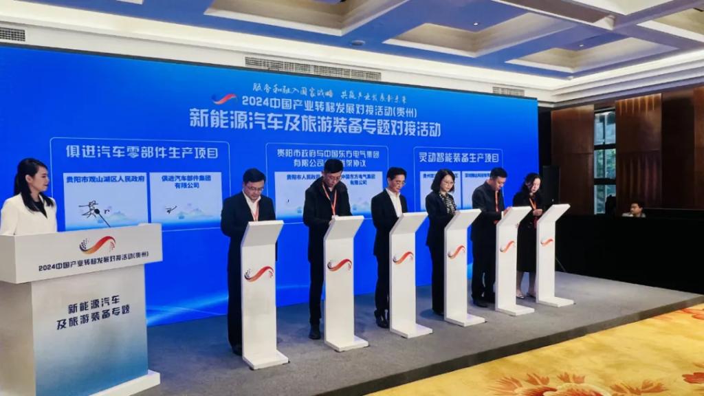 2024中国产业转移发展对接活动(贵州)以“服务和融入国家战略 共赢产业发展新未来”为主题,包括1场综合活动和4场专题活动,围绕资源精深加工及综合利用、先进装备制造、大数据电子信息、特色轻工等贵州特色优势产业,开展地市推介、政企对接、实地考察、专家解读、项目签约等。在新能源汽车及旅游装备专题对接活动中,壹号娱乐-com - NG大舞台,有梦你就来集团与贵阳市人民政府签署了战略合作框架协议。