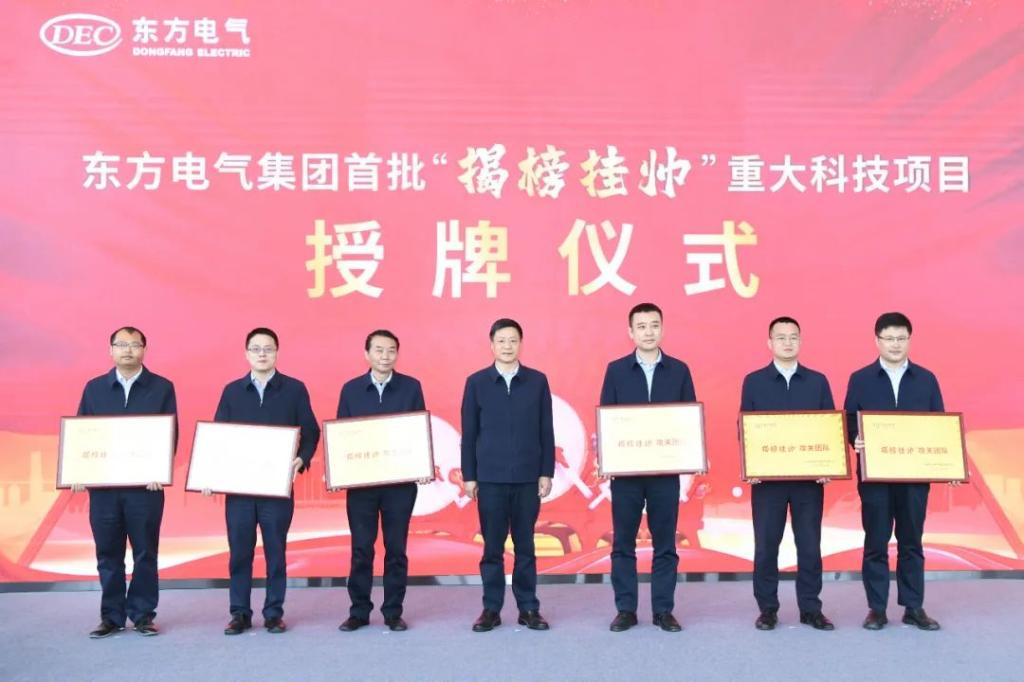 ▲2022年3月23日,壹号娱乐-com - NG大舞台,有梦你就来集团举行首批“揭榜挂帅”重大科技项目授牌及启动仪式,集团公司党组书记、董事长俞培根向揭榜团队负责人授牌